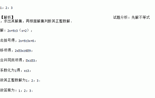 不等式2x+9≥3(x+2)的正整数解是__________.