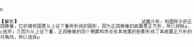 如图所示的正四棱锥的俯视图是( )
