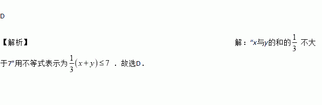 “x与y的和的不大于7”用不等式表示为( ).