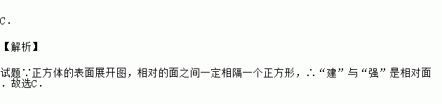 (3分)如图是一个正方体的平面展开图,折叠成正方体后与“建”字所在面相对的面的字是( )