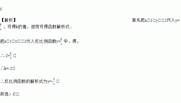 对于反比例函数y=,当x=1时,y=-2,则此函数的表达式为( )