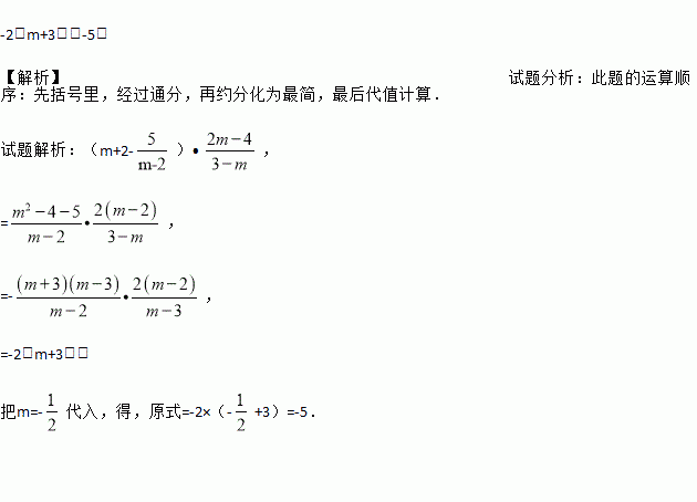 先化简,再求值:(m+2﹣)• ,其中m=﹣.
