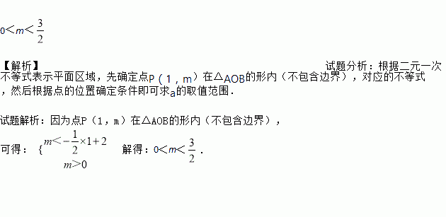 x+2分别交x轴,y轴于A,B两点,点P(1,m)在△AOB的形内(不包含边界),则m的取值范围是________.