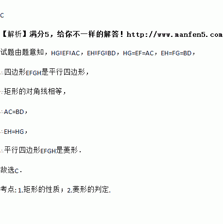 如图,过矩形ABCD的四个顶点作对角线AC、BD的平行线,分别相交于E、F、G、H四点,则四边形EFGH为( )
