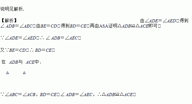 如图,∠ABC=∠ACB,∠ADE=∠AED,BE=CD,试说明:△ABD≌△ACE.
