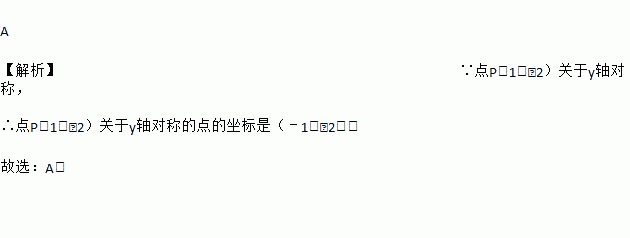 A 【解析】∵点P(1,﹣2)关于y轴对称, ∴点P(1,﹣2)关于y轴对称的点的坐标是(﹣1,﹣2). 故选:A.