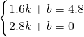 将点(1.6,4.8),(2.8,0)代入,
