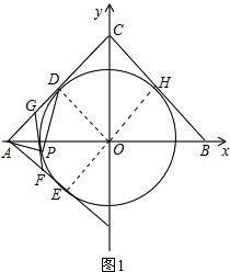 (2)连接OE,如图1,易证四边形ODAE是正方形,则有AD=AE=OD=3.设AF=4x,则GA=$\frac{3}{4}$AF=3x,根据勾股定理可得GF=5x,根据切线长定理可得GD=GP,FP=FE,由此可得到AD+AE=12x=6,即可得到x=$\frac{1}{2}$,从而可得到AG=DG=GP=$\frac{3}{2}$,由此可证到PA⊥PD;