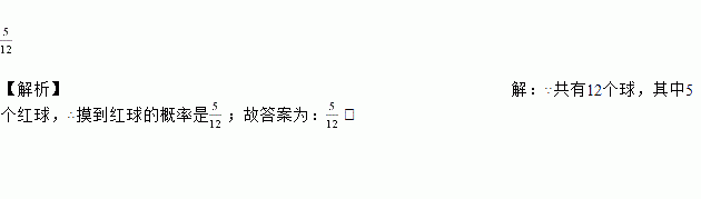 在一个不透明的口袋中,装有5个红球4个白球3个黄球,它们除颜色外都相同,从中任意摸出一个球,摸到红球的概率是______