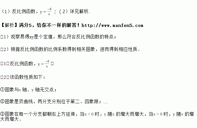 (1)试猜想y与x的函数关系可能是你们学过的哪类函数,并写出这个函数的解析式.(不要求写x的取值范围)