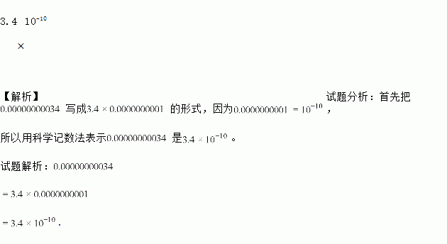石墨烯是现在世界上最薄的纳米材料,其理论厚度仅是0.00000000034m,这个数用科学记数法表示为________________m..