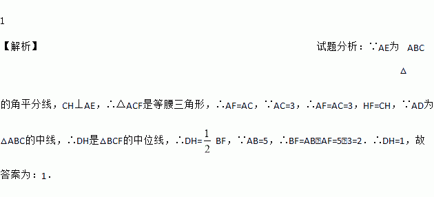 如图,在△ABC中,AB=5,AC=3,AD、AE分别为△ABC的中线和角平分线,过点C作CH⊥AE于点H,并延长交AB于点F,连结DH,则线段DH的长为_____.