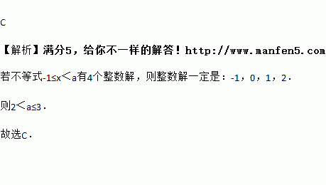 若不等式-1≤x<a有4个整数解,则a的取值范围是( ).