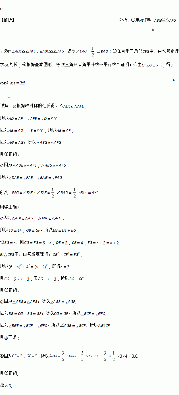 ①△ABG≌△AFG;②∠EAG=450;③BG=GC; ④AG∥CF; ⑤S△FGC=3.6