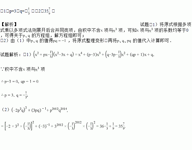 若(x2+px﹣)(x2﹣3x+q)的积中不含x项与x3项,