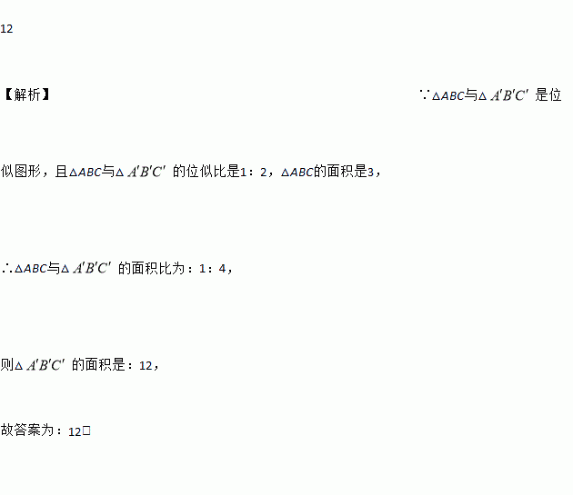 △ABC与△A′B′C′是位似图形,且△ABC与△的位似比是1:2,已知△ABC的面积是3,则△的面积是________