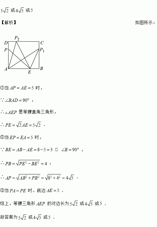 如图,是一张长方形纸片,已知, , 为边上一点, ,现在要剪下一张等腰三角形纸片(),要使点落在长方形的某一边上,则的底边长为__________.