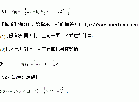 (1)用a、b表示阴影部分的面积;