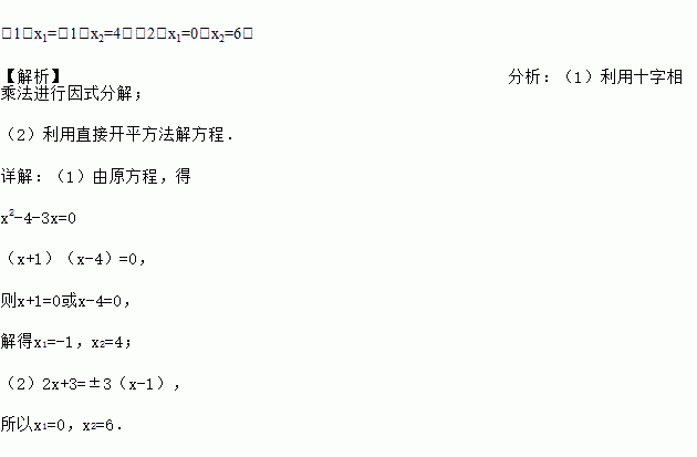 用适当方法解方程:(1)x2﹣4=3x;(2)(2x+3)2=9(x﹣1)2