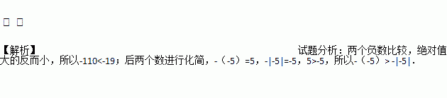 比较大小:- 110____- 19; -(-5)____-|-5|.(用“>”“<”“=”连接)