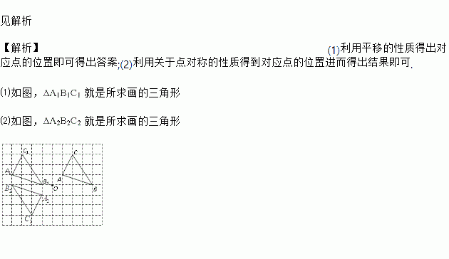 (2)△A2B2C2,使△A2B2C2与△ABC关于点O成中心対称,点A的对应点是A2.