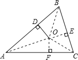 解:如图:连接OA,OB,OC,过点O作OE⊥BC于E,作OF⊥AC于F,
