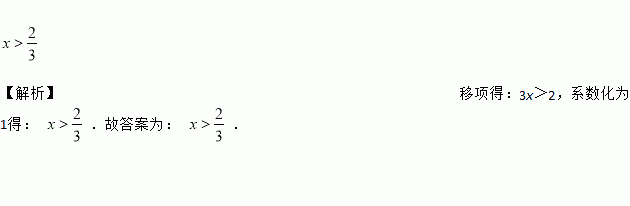 不等式3x-2>0的解集是________.