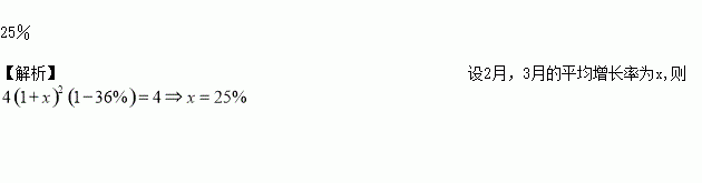去年2月“蒜你狠”风潮又一次来袭,某市蔬菜批发市场大蒜价格猛涨,原来单价4元/千克的大蒜,经过2月和3月连续两个月增长后,价格上升很快,物价部门紧急出台相关政策控制价格,4月大蒜价格下降了36%,恰好与涨价前的价格相同,则2月,3月的平均增长率为___________.