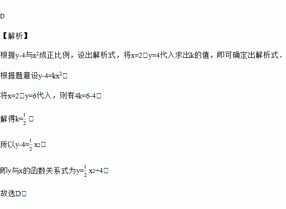 若y﹣4与x2成正比例,当x=2时,y=6,则y与x的函数关系式是( )