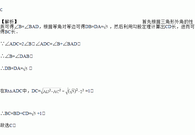 如图,△ABC中,∠C=90°,AC=2,D在BC上,∠ADC=2∠B,AD=