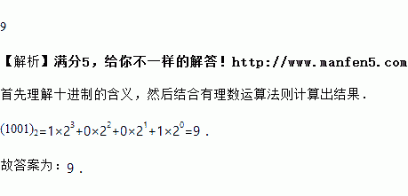 按此方式,将二进制数(1001)2换算成十进制数的结果是________.(注:20=1)