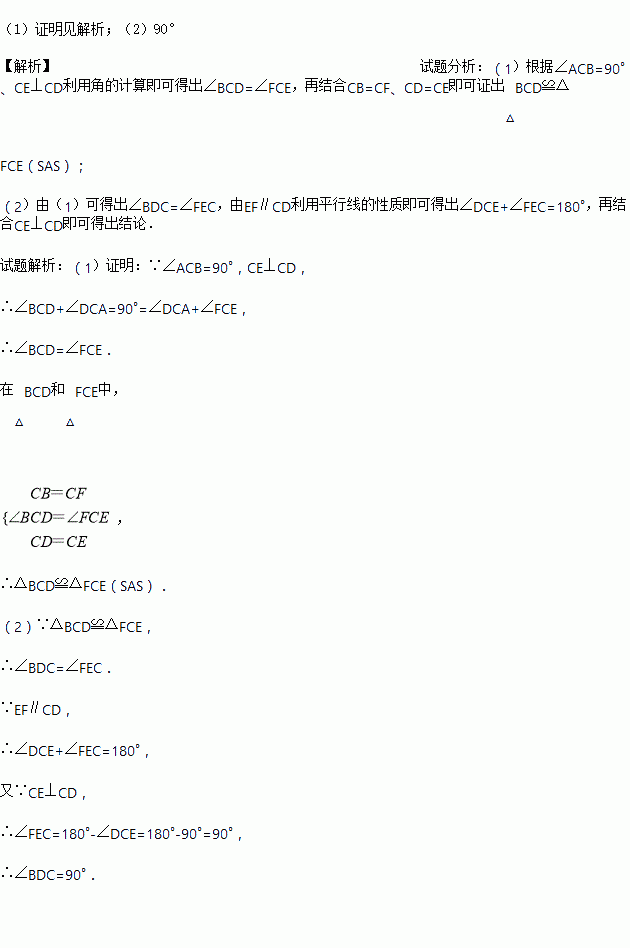 (1)求证:△BCD≌△FCE;