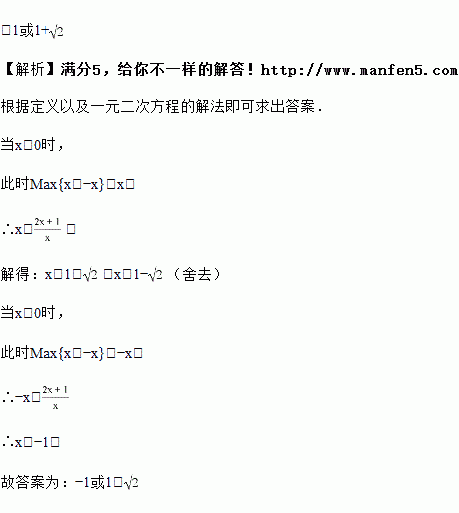 对于两个不相等的实数a、b,我们规定:符号Max{a,b}表示a、b中的较大数,如:Max{﹣2,﹣4}=﹣2.按照这个规定,方程Max{x,﹣x}= 的解为_____.