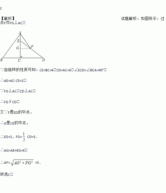 如图,在Rt△ABC中,AC=6,BC=4,将△ABC绕直角顶点C顺时针旋转90°得到△DEC,若点F是DE的中点,连接AF,则AF的长为( )