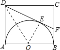分析:设FC=x,AB的中点为O,连接DO、OE.由于AD、DE都是⊙O的切线,由切线长定理可知DA=DE=3.同理EF=FB=x,则在直角△DCF中,由勾股定理即可求得CF的值.最后根据正切三角函数的定义来求tan∠CDF的值.