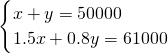 根据销售收入为61000万元,则1.5x+0.8y=61000.
