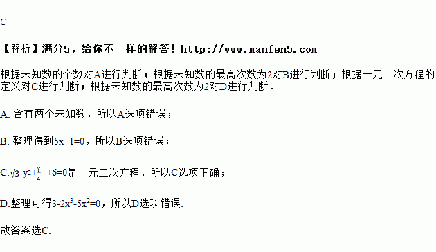 A. x2+by+c=0 B. x2+5x=x2+1