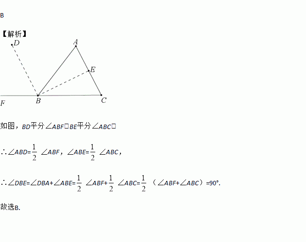 三角形中∠B的平分线和外角的平分线的夹角是( ).