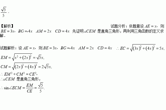 如图,在正方形ABCD中,M是AD的中点,BE=3AE,试求sin∠ECM的值.