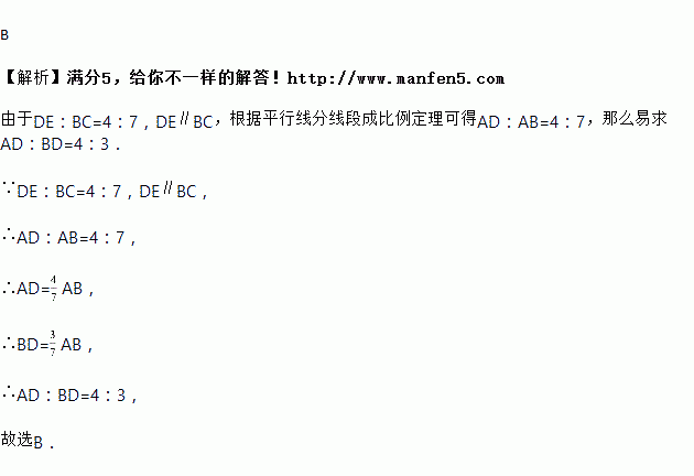 A. 4:7 B. 4:3 C. 3:7 D. 3:4