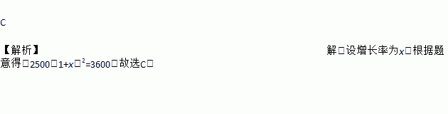 C. 2500(1+x)2=3600 D. 2500(1+x)+2500(1+x)2=3600