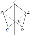 分析:根据正五边形的对称性,先任意作出两条对角线相交于一点,然后过第五个顶点与这个交点作出对称轴即可.