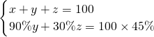 则根据第一种含磷60%,钾40%,第二种含钾10%,氮90%;第三种含钾50%,磷20%,氮30%,这三种肥混合成含氮45%的混合肥100㎏,可列式90%y+30%z=100×45%,x+y+z=100.再利用加减消元法算出用x表示的y、z表达式,进而求出x的取值范围.