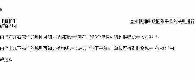抛物线y=(x+3)2﹣4可以由抛物线y=x2平移得到,则下列平移过程正确的是( )