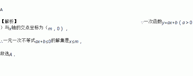 一次函数y=ax+b(a>0)与x轴的交点坐标为(m,0),则一元一次不等式ax+b≤0的解集应为( )