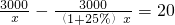 某市为治理污水,需要铺设一段全长为3000m的污水排放管道,为了尽量减少施工对城市交通所造成的影响,实施施工时,每天的工效比原计划增加25%,结果提前20天完成这一任务,原计划每天铺设多长管道?设原计划每天铺设x米管道,根据题意所列的方程为( )