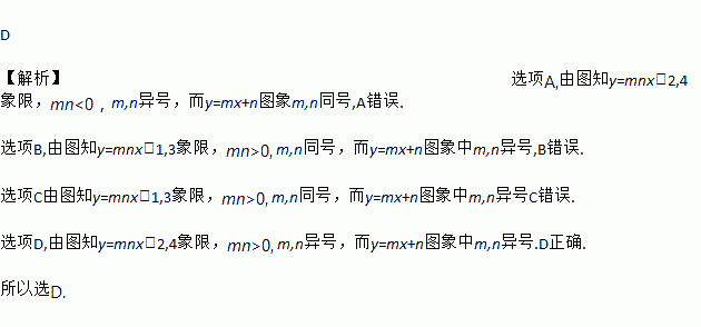 一次函数y=mx+n与y=mnx(mn≠0),在同一平面直角坐标系的图象是( )