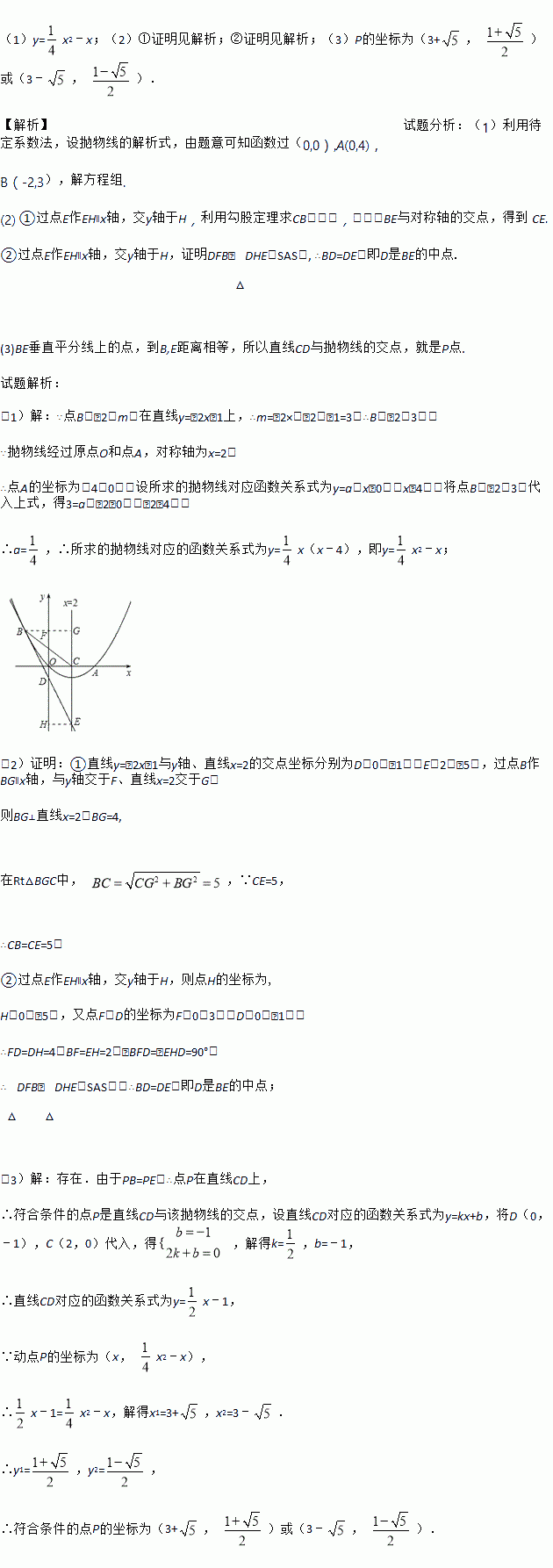 (3)若P(x,y)是该抛物线上的一个动点,是否存在这样的点P,使得PB=PE?若存在,试求出所有符合条件的点P的坐标;若不存在,请说明理由.