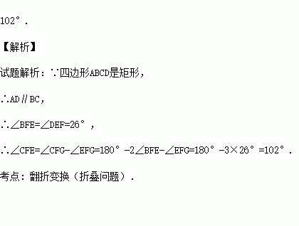 如图a是长方形纸带,∠DEF=26°,将纸带沿EF折叠成图b,再沿BF折叠成图c,则图c中的∠CFE的度数是 .