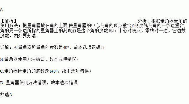 下面四幅图中,用量角器测得∠AOB度数是40°的图是( )
